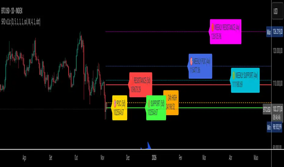 Dynamic and Non-Repainting: The levels are calculated based on historical confirmed bars and update automatically as new periods (daily or weekly) close. The lines extend to the right, remaining relevant until a new calculation period begins.
