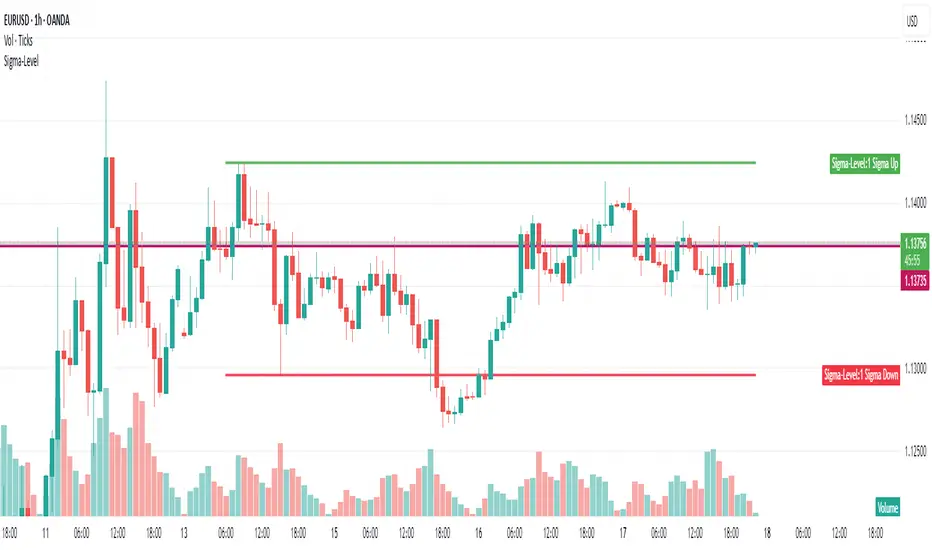 The indicator calculates the 1σ range using this formula: