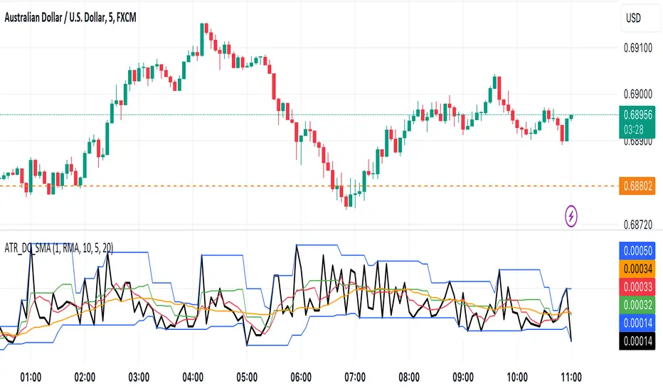 This script combines the Average True Range (ATR), Donchian Channels, and Simple Moving Averages (SMAs) to provide a comprehensive tool for volatility and trend analysis.