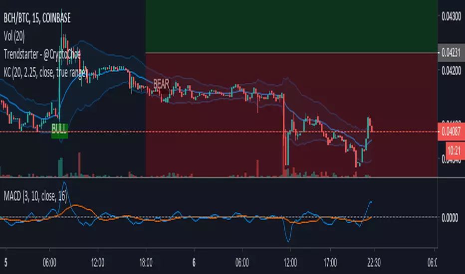 Based on Adam H. Grimes' Modified MACD. Uses a 3/10 simple MA for the fast line and a 16 for the signal line. Added a zero line.