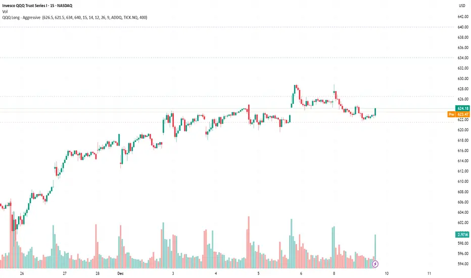 Entry Condition 1. Reclaim and hold above VWAP. 2. RSI>60. 3. MACD (15min) zero-line cross. 4. ADDQ positive, TICK > +400.