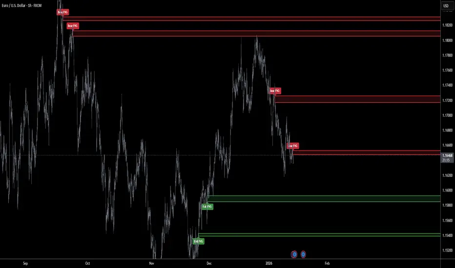 Fair Value Gaps form during aggressive displacement when price delivers inefficiently, leaving a void that price often returns to rebalance. This tool helps you spot those zones fast, track whether they’re still fresh, and plan entries with confidence. ✅