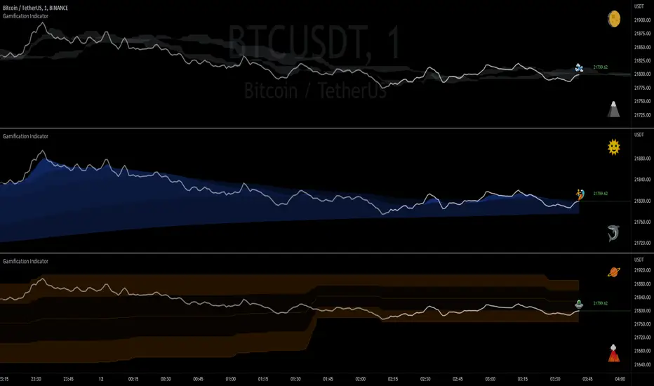 Do you want your charts to look like a video game? Look no further! Would you rather be an alien racing through a lava tube, a surfer with great white sharks, an airplane flying through the clouds, or some other custom emoji setup of your choice? Traders can choose their own custom player emoji, trend indicator, obstacle emoji, and celestial emoji. This indicator is just for fun and is not intended to be used when making trading decisions. Enjoy!