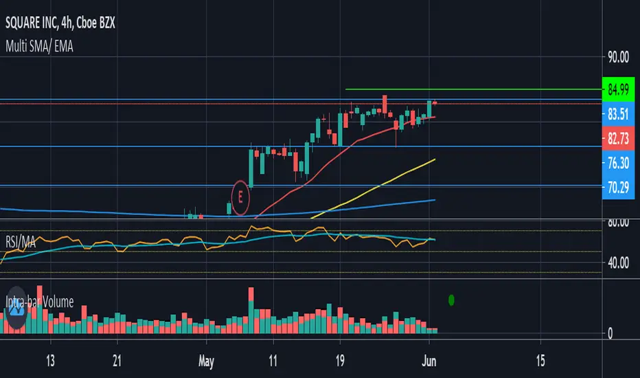 A combination of multiple simple & exponential moving averages in one indicator. On the daily chart for rocket stocks, price mainly follows EMA 1 (8 period) and falls back to SMA 1 (20 period) occasionally for support. Healthy trends respect SMA 1 and 2 (50 period). SMA 5 (200 period) acts as strong support or resistance.