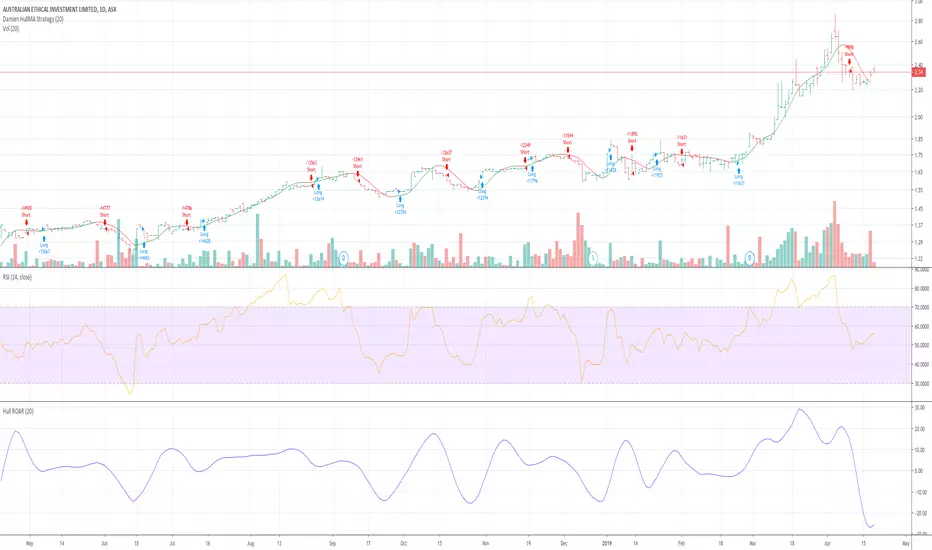 Implementation in PINE script of Alan Hull's Hull ROAR indicator. See alanhull.com/hull-roar-indicator受保護腳本