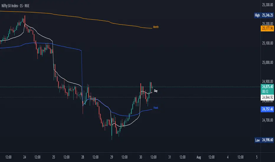 This script plots critical multi VWAPs anchored at Daily, Weekly, Monthly