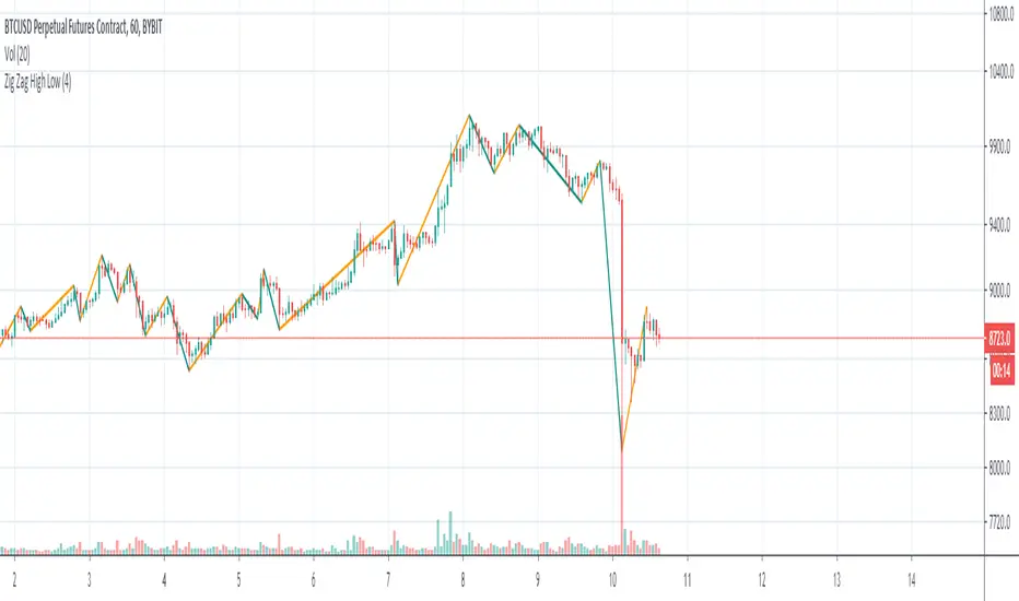 Zig Zag script that uses local minimums and maximums as pivot points. It can be used as a source for pattern recognition.