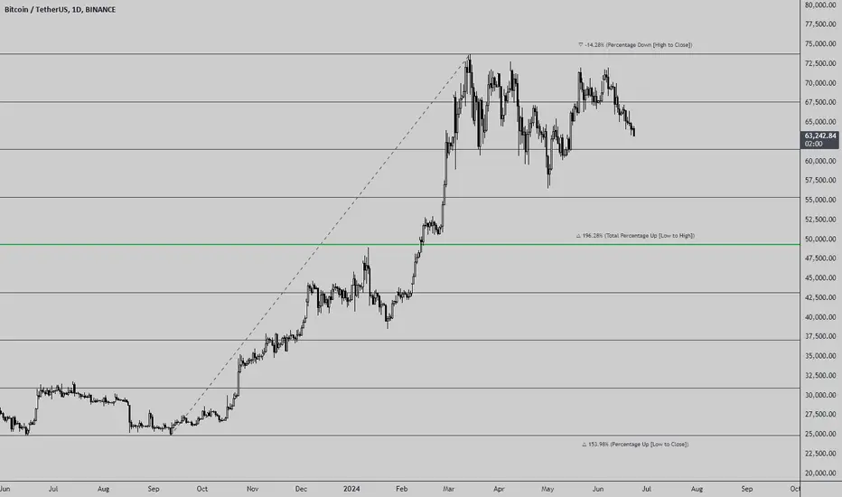 Then, the indicator proceeds to draw the High to Low range by Eighths.