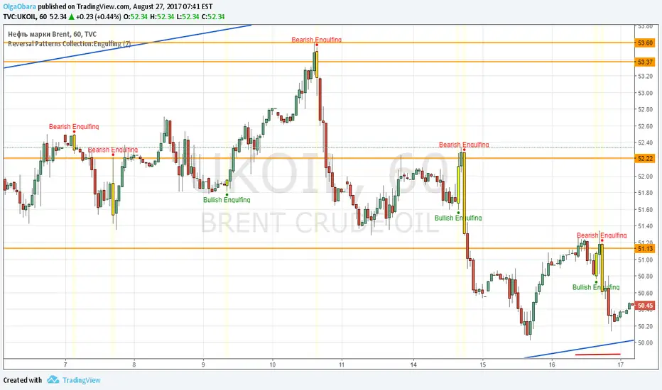 Script contains Engulfing patterns (busllish and bearish). User can select period for candle size calculation (for distinguish short and long candles), on/off patterns highlighting.