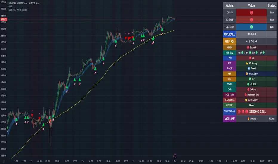 7. **Wait for CONFLUENCE SIGNAL** → Only enter on 🔴🔴🔴 **STRONG SELL**