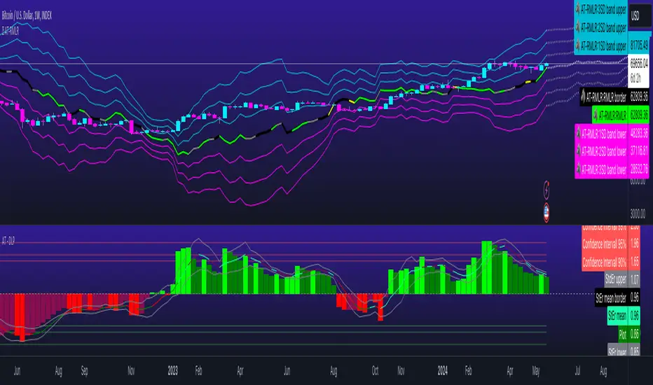 The Alpha Trading Deviation Log Pro displays a mean of log returns, with returns and price both weighted using our proprietary root mean square (RMS) Z-Score.