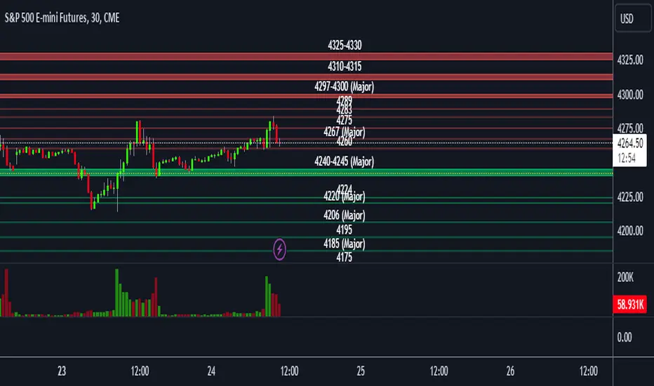This script only works on the /ES symbol in Tradingview due to the string manipulation of the levels.