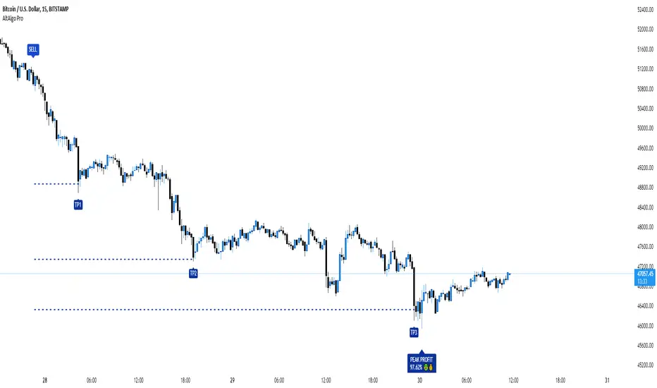 AltAlgo Pro & AltAlgo Pro Tester v5.0We've just made our perfect AltAlgo even better. Current update not only migrates code of AltAlgo to the newest pine script version which is v5 but it also add new feature which is SuperTrend filter. SuperTrend is popular indicator based on ATR multiplier and ATR length. In most cases it is used to trail stoplosses. We've taken different approach and add it as a trend filter. Rules are the same as usage of MultiMA, If the current price is above SuperTrend only BUYs are allowed, below SuperTrend only SELLs are allowed. Our implementation of SuperTrend is MTF (multi timeframe) which means you can take it from timeframe equal to chart timeframe or higher i.e your chart is 5min but you can use SuperTrend from 15min or 1h timeframe to get better trend indication. To use this awesome brand new feature just mark checkbox near SuperTrend and choose Multiplier (default 3) and ATR Period (default 10). If you do manual trading you can also only plot SuperTrend - just leave unchecked