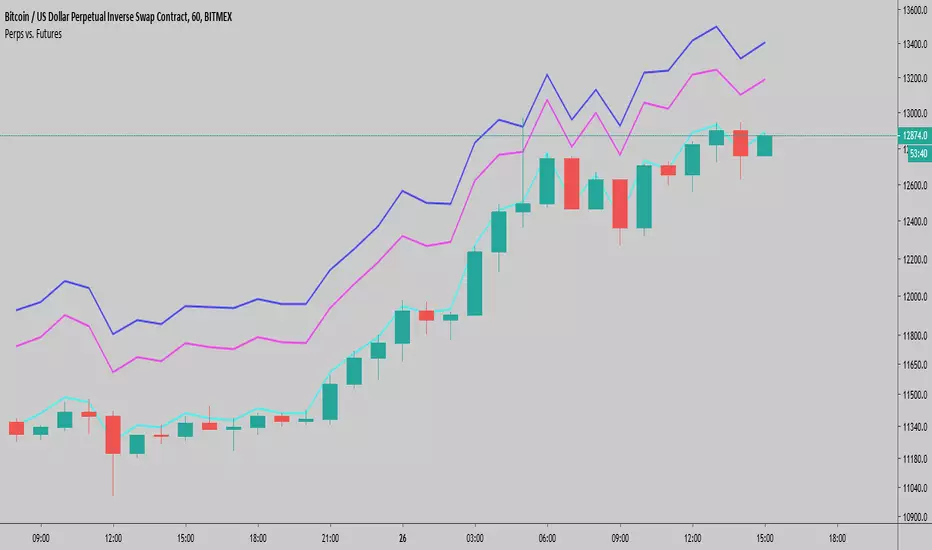 This chart is specifically designed to overlay XBTUSD, Bitmex Perpetual Inverse Swap contracts, so as to have a quick reference of the correlation between Futures and Perpetuals on the Bitmex exchange. Algos keep everything pretty close, but discrepancies can be gleaned if one is looking closely enough. Very basic script, but makes things a little more convenient than what I was using for this before. Publishing because, why not? A Premiums indicator would complement this script nicely.