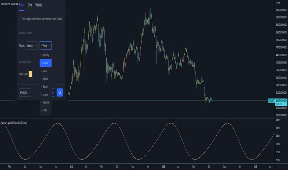 Planetary Speed cycles are very important for those trading Gann theory / Time theory and for Astrology Traders alike. You can toggle the mode of the planet