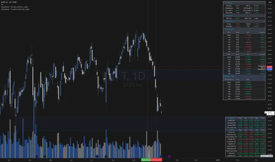 - Earnings & Revenue: 8 quarters of EPS/REV with YoY growth and analyst surprises