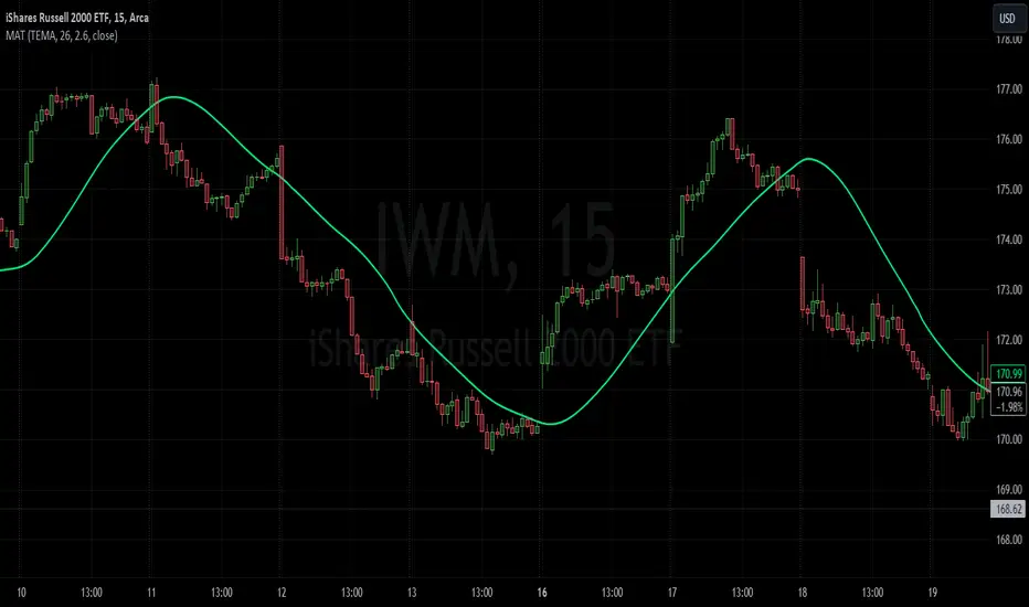 The filtered mean is then passed through a moving average function, where various types of moving averages like SMA, EMA, DEMA, TEMA, and ALMA can be applied. Some popular averages such as the HMA were omitted due to their heavy dependency on weighing specific data points.