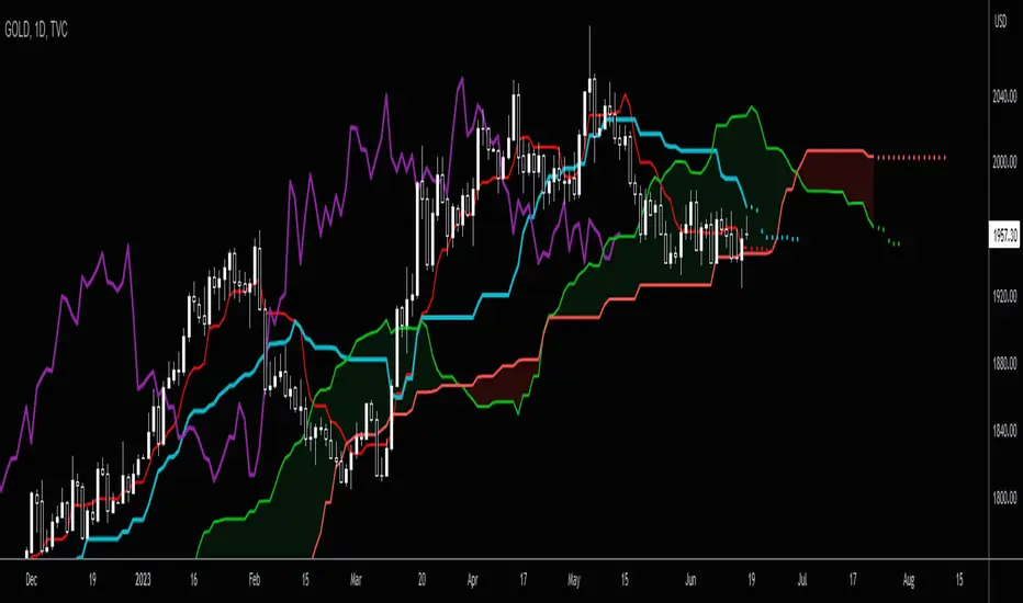 Future Ichimoku Lines Plot: Tenkan-sen next 5 days, Kijun-sen next 10 days, Kumo A next 5 days and Kumo B next 14 days will be display