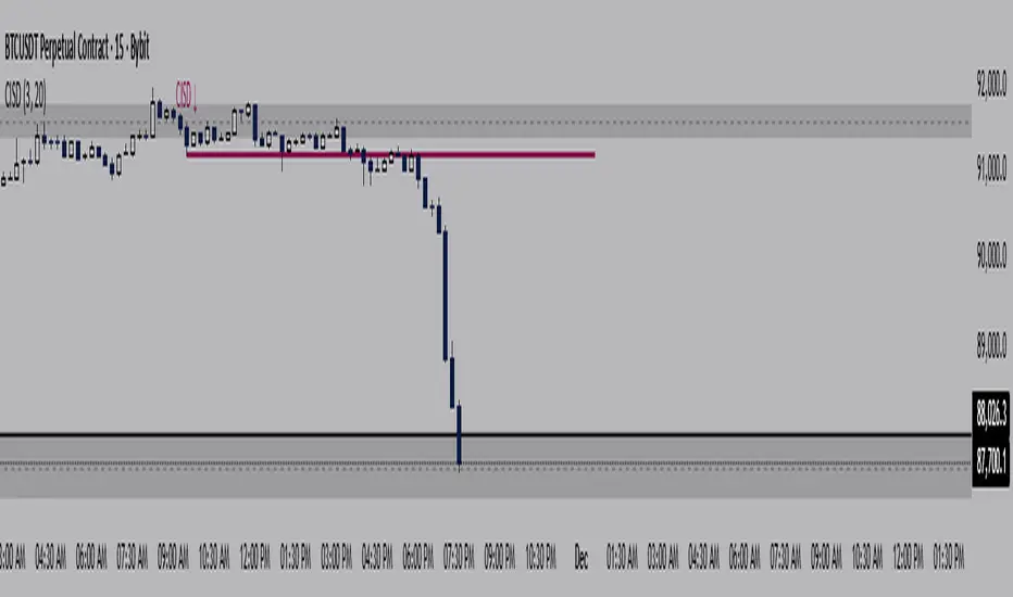 It does so by tracking swing-based structure and marking the key pivot that supported the prior delivery. When price closes beyond that structural pivot, a CISD level is printed and the state of delivery is considered flipped.