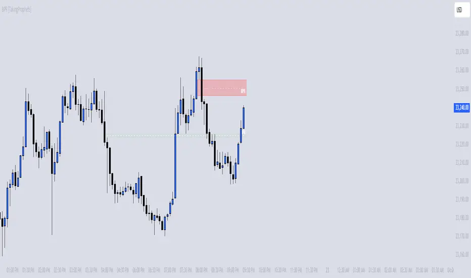 The BPR (Balanced Price Range) Indicator by Taking Prophets is built for traders who follow ICT (Inner Circle Trader) concepts and smart money strategies. In ICT methodology, a Balanced Price Range (BPR) occurs when price rapidly moves in one direction, creating an imbalance that often gets revisited before price continues its trend. These areas represent inefficiencies in the market where liquidity was not properly distributed, making them key zones for potential retracements and trade setups.