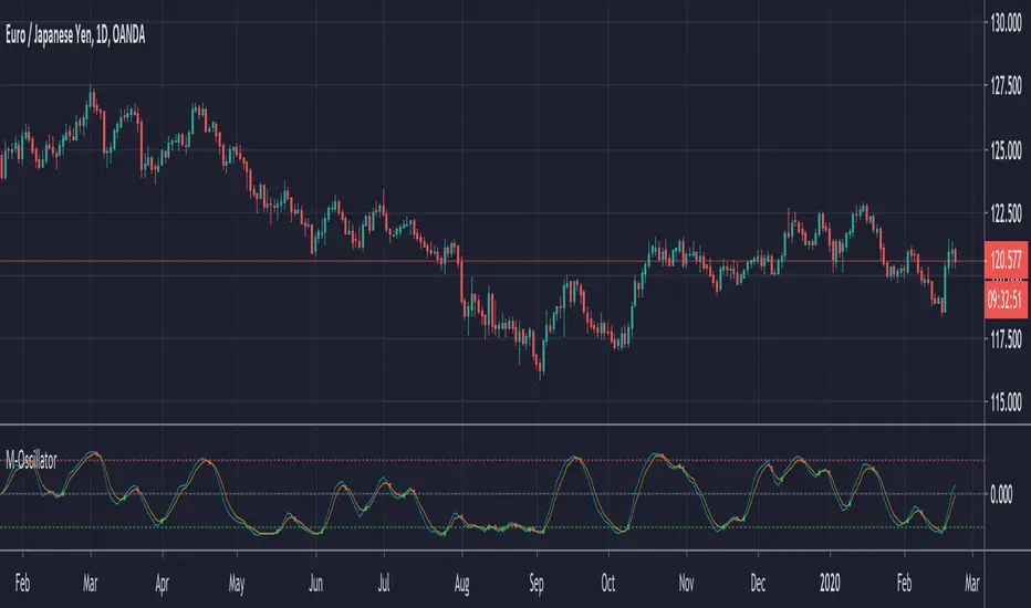 The M-Oscillator analyses the price change rather than the price level. It draws the difference between prices at two time intervals.