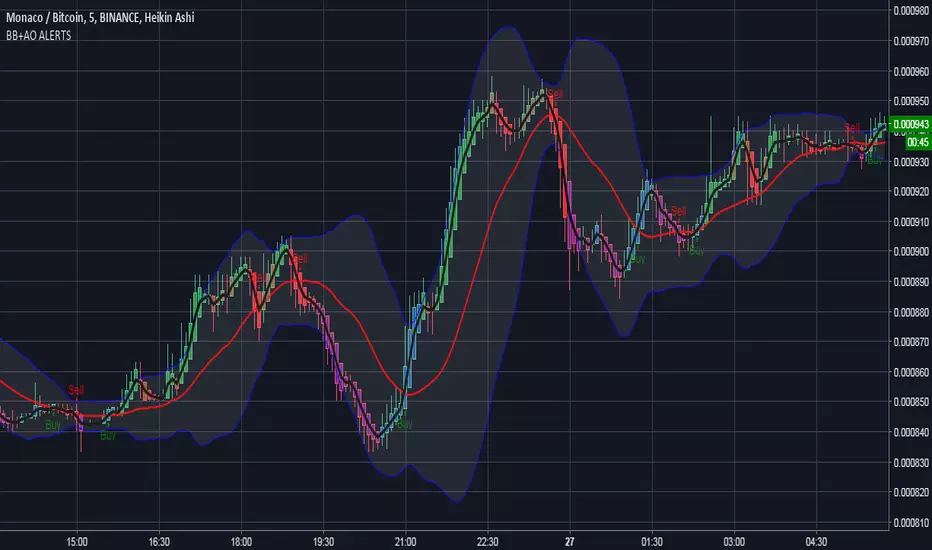 works on 1/3/5/15/30 candles, buy signals are best when the black 3 fast ema crosses up through the red mid band