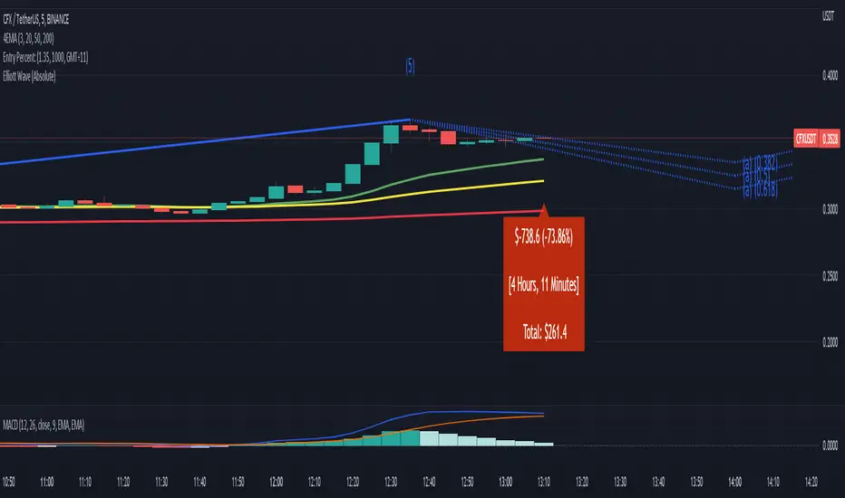 This Pine Script code is designed to perform the task of computing and showcasing the profit percentage, profit value, and the duration for which a specific asset is held, all in real-time. The script effectively leverages the built-in resources to provide a seamless and robust experience, as it presents the calculated figures in an easily readable format on the chart, without causing any lag or disruptions to the chart.