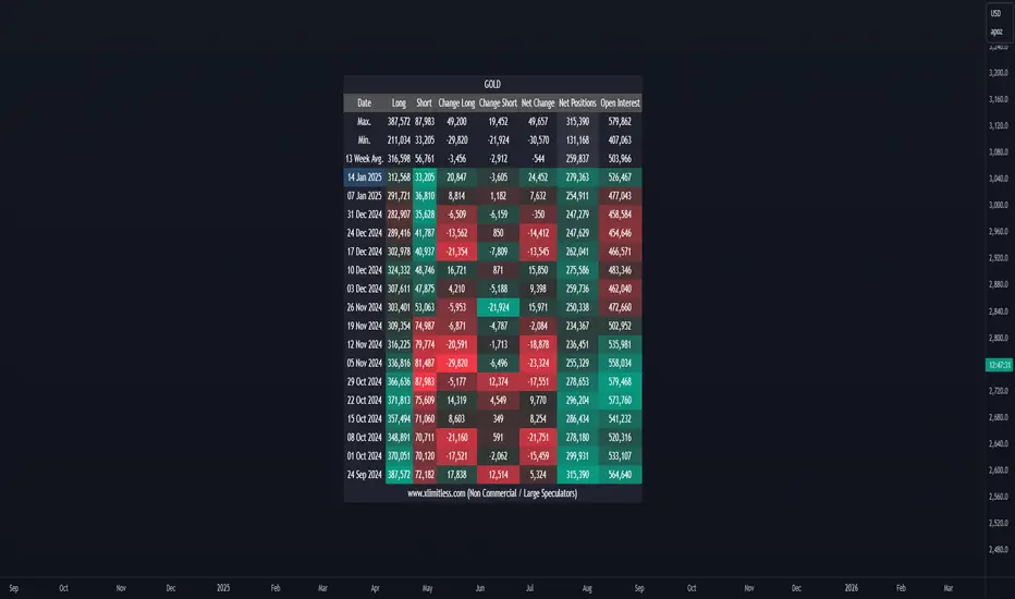 XLimitless - COT Indicator, designed to give traders a competitive edge by visualizing the weekly Commitment of Traders (COT) data in an interactive and customizable table.