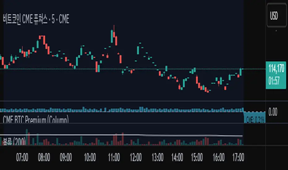 * If `Show CME Label` is enabled, the last bar displays a premium percentage label.