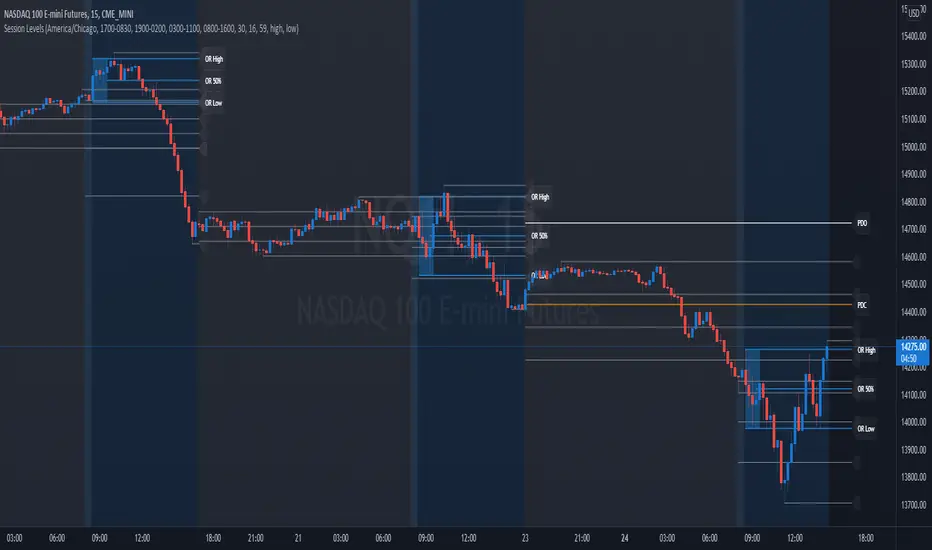 - Enable the New York Session with Levels and Opening Range. Generally, 70% of the time the 1st hour will put a Low or High of the day.