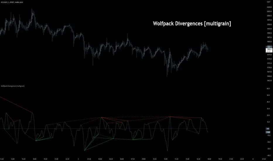 Wolfpack is an oscillator made popular by darrellfischer1 all the way back in 2017. Since then the Wolfpack oscillator has been utilized by a number of notable strategy/indicator creators. At some point it was realized that the oscillator was simply the Moving Average Crossover Divergence oscillator with the fast and slow length of 3 and 8, respectively. The true significance and reasoning behind these lengths are unknown, however one may surmise that they are chosen due to their relevance as Fibonacci numbers.