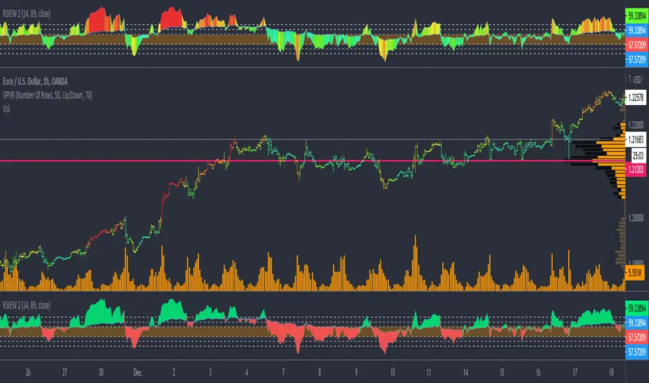 In order to the RSIEW Version 1 (look below this text) I build a thermal rainbow chart that shows the spectrum with all overbought and oversell phases. The colour spectrum can be compared with a thermal imaging camera.