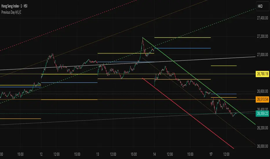 Previous day's High, Low and Closing levels for the Hong Kong index.