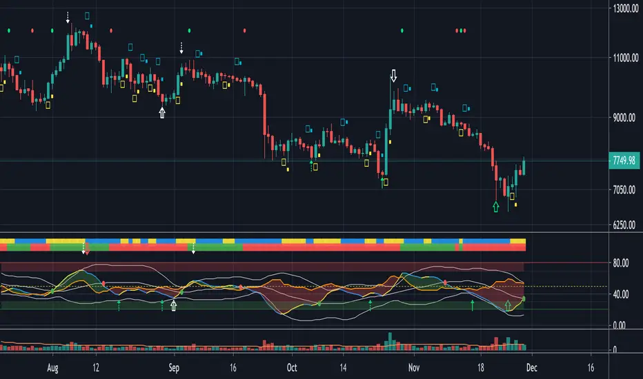 - Added symbols when MARSI of RSI (depends on the plot you're seeing) crosses the Median line (basis) of Bollinger Bands