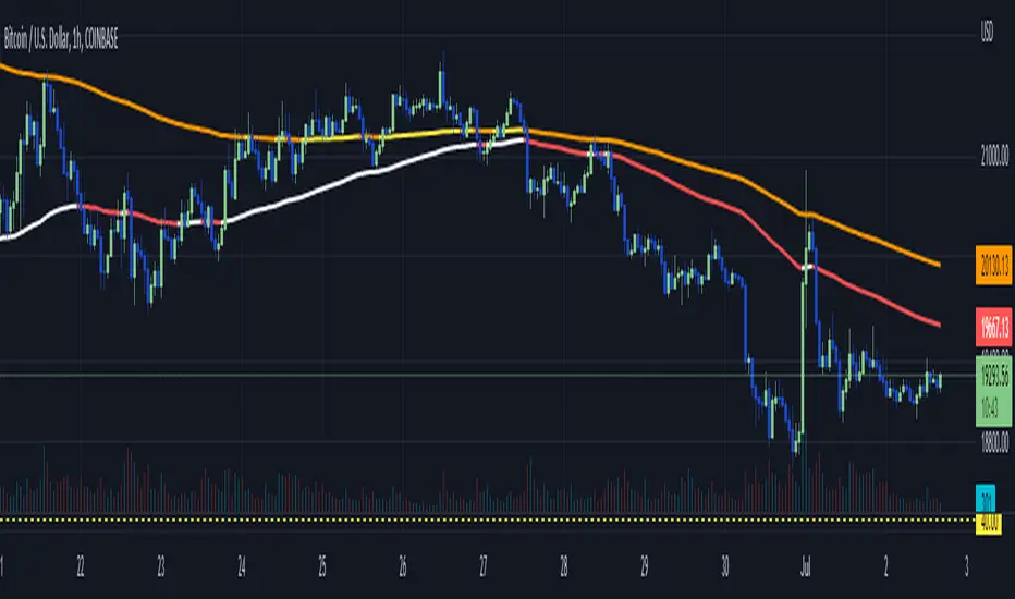 For example I find it prudent to select long when the PA is above both the White (100EMA) and Yellow (200EMA) - conversely selecting short when below Red (100EMA) and Orange (200EAM).