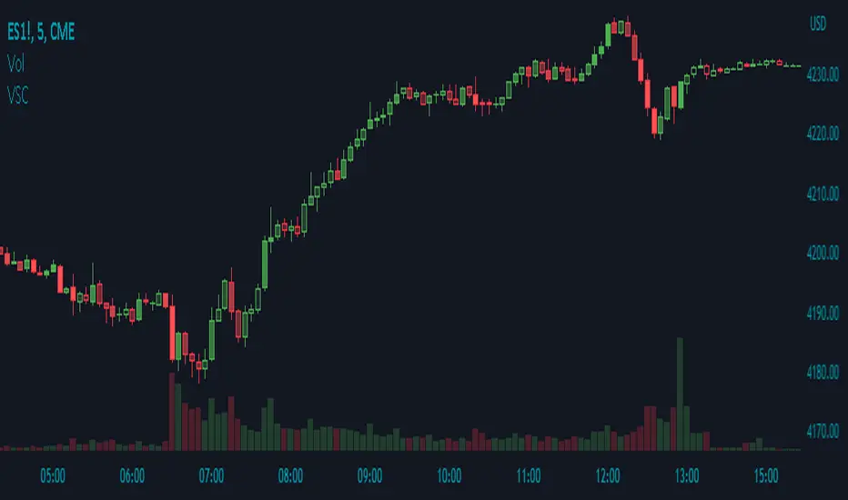The Volume Shaded Candles indicator (VSC) is a technical analysis tool designed to represent price candles on a chart with transparency based on the volume traded during each candle. This overlay indicator enhances visual analysis by providing a visual representation of volume intensity.