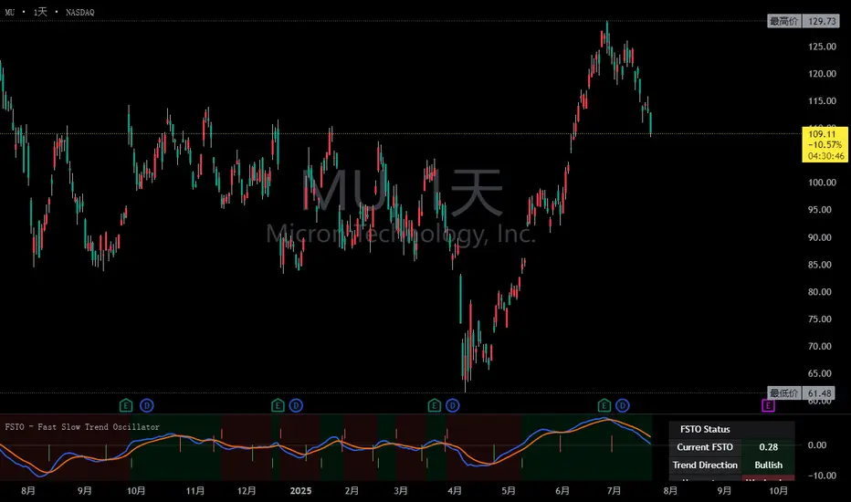 The FSTO (Fast Slow Trend Oscillator) is a powerful momentum indicator designed to identify trend direction, strength, and potential reversal points in financial markets. Based on the relationship between short-term and long-term exponential moving averages (EMAs), FSTO provides clear visual signals and actionable alerts to help traders make informed decisions.