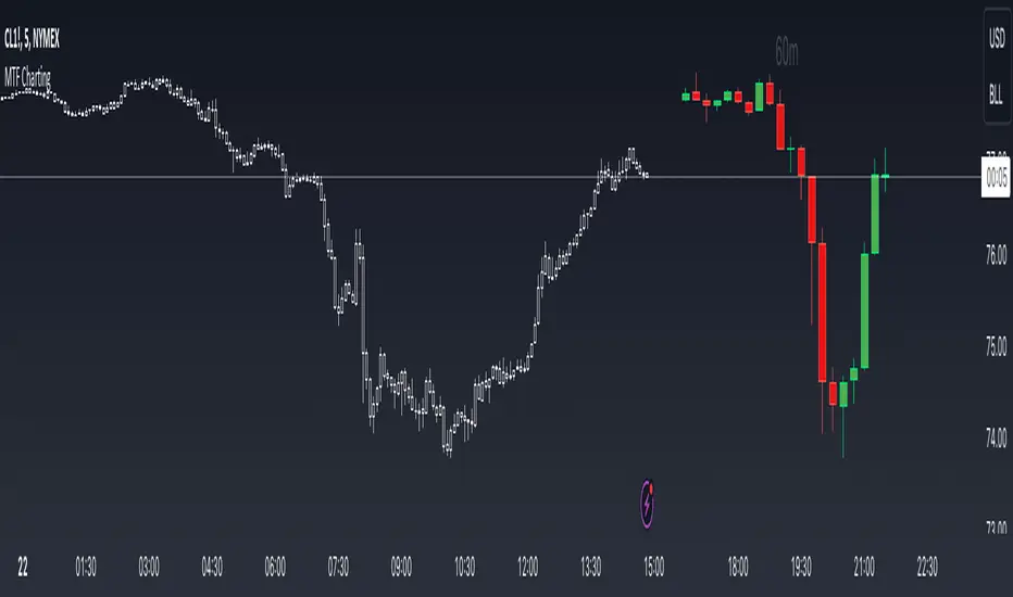 Market Analysis: By displaying candlesticks from different timeframes, traders can analyze the market more comprehensively. For instance, while the main chart might show a short-term trend, the MTF charting can reveal a different longer-term trend, aiding in more informed decision-making. - Trend Confirmation: Viewing multiple timeframes simultaneously helps in confirming trends. If multiple timeframes show a similar trend, it might indicate a stronger, more reliable trend.