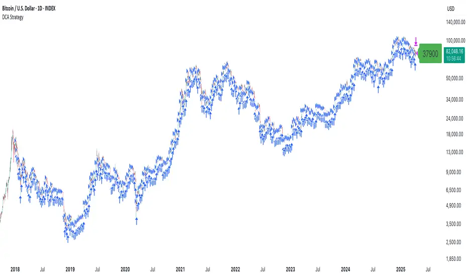 This strategy makes it easy for you to backtest and automate the DCA strategy based on 2 triggers: