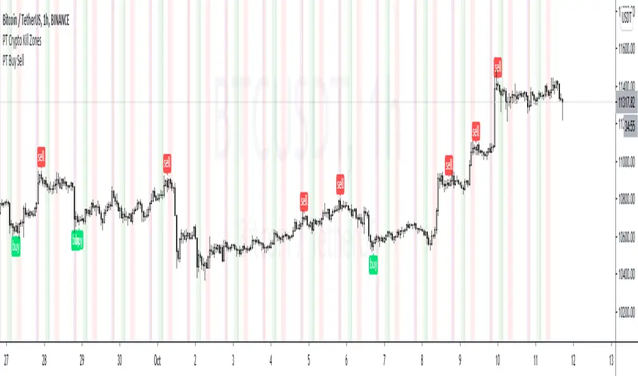 Version 1.0 of our PT Crypto Kill Zones indicator helps create a visual of specific times throughout the trading day, which we can expect volatility. The market moves within particular sessions. These sessions are broken up as such in three segments, NY, London & Asia.