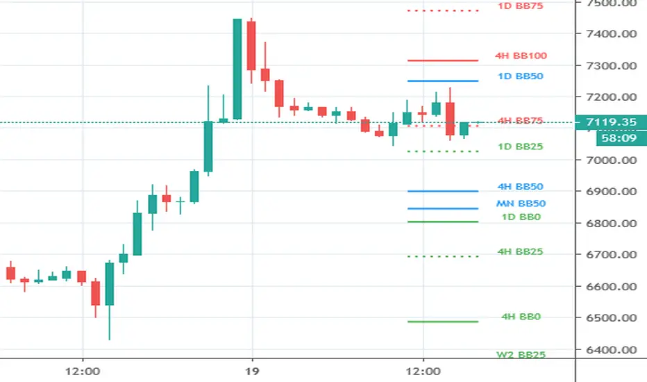 This indicator draws Bollinger Bands- levels from higher timeframes on the chart's right border as a horizontal support/resistance lines. BB(20)- levels are shown from timeframes MN, 2W, 1W, 1D, 4H and 1H.