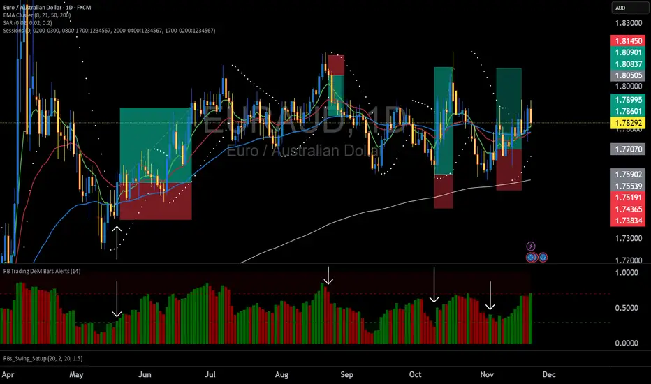→ Bold, vibrant DeM line + optional fast trigger line (default 8-period) for scalpers & early entries