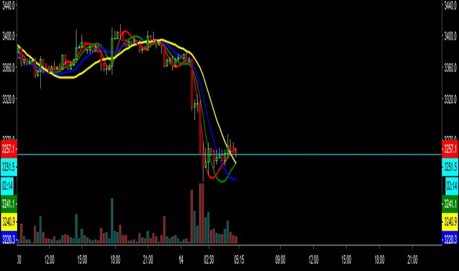 The Hull Moving Average (HMA) was developed by Alan Hull in 2005 for the purpose of reducing lag, increasing responsiveness while at the same time eliminating noise. Its calculation is elaborate and makes use of the Weighted Moving Average (WMA). It emphasizes recent prices over older ones, resulting in a fast-acting yet smooth moving average that can be used to identify the prevailing market trend. It can also be used for entry and exit signals. I have integrated 4 HMA's into one which can be used for taking entry and exits similar to 4 EMA strategies. All credit goes to Alan Hull for developing this technique.