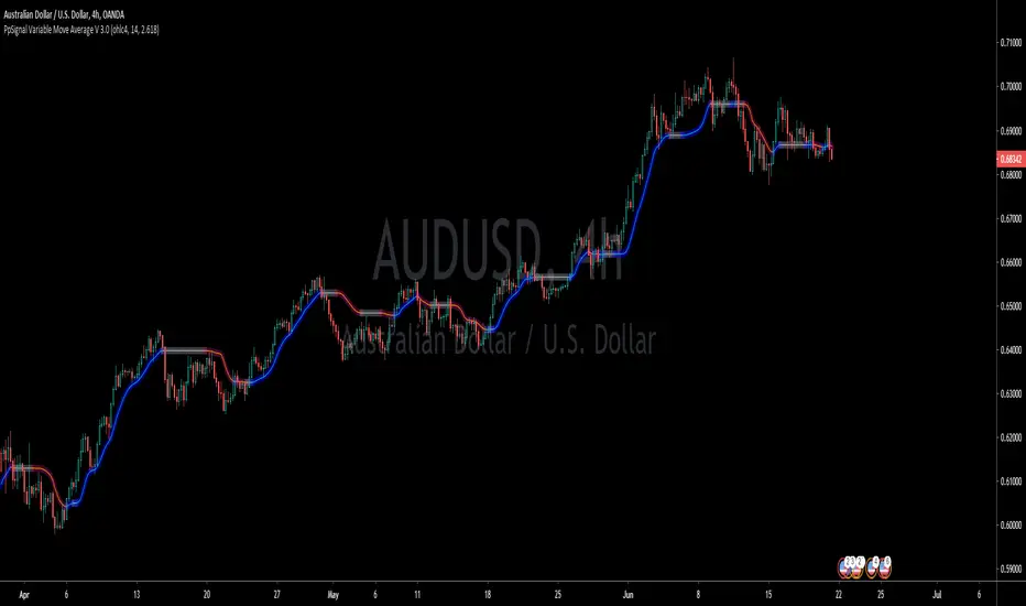 A Variable Moving Average is an exponential moving average that automatically adjusts the smoothing weight based on the volatility of the data series. The more volatile the data is, the more weight is given to the more recent values. The Variable Moving Average solves a problem with most moving averages.