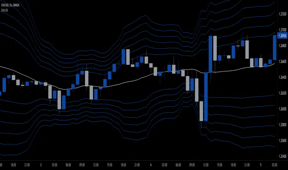 20 period SMA Bollinger Bands with the following standard deviations: 1.5 2 2.5 3 3.5 4