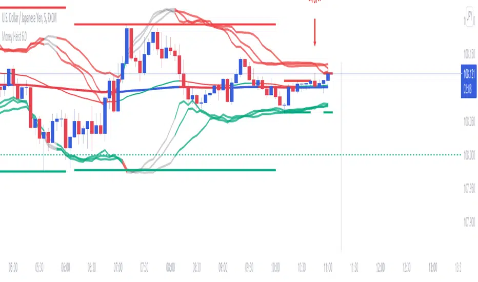 • The Bollinger Bands will turn Red for Resistance and Green for Support when the Market is Consolidating. The bands will turn Red at the Bottom and Green at the Top when the Market is in a Heavy Trend.