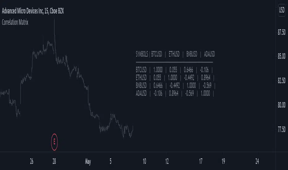 Returns a 4x4 correlation matrix between various user-selected symbols. Users can change the window of the correlation with the setting length.