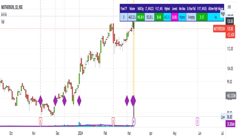 Hi,Updated the indicator to highlight All Time High Volume on the Chart and also that candle where the current day's volume has crossed above cumulative volume of previous month.