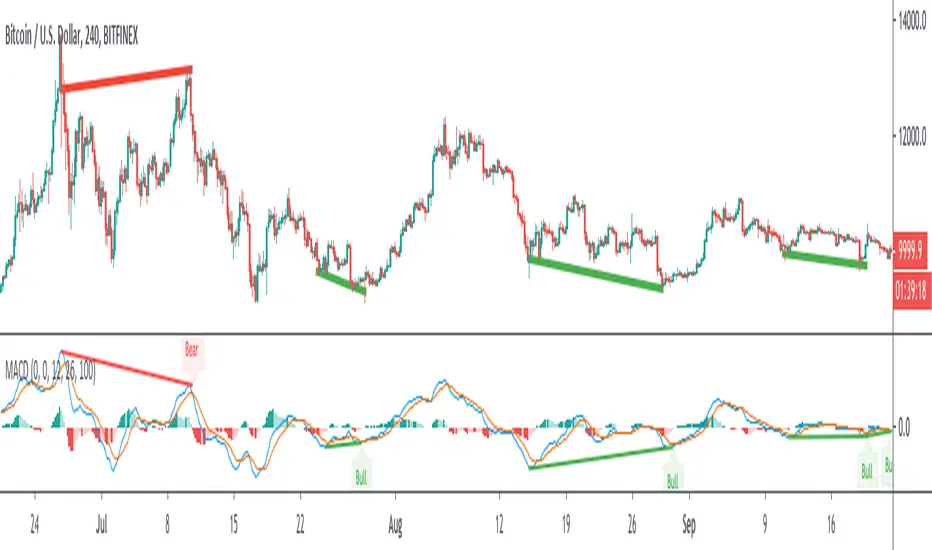 • MACD Bullish Divergence Under: <0 (lower for larger volatility and more bearish markets)