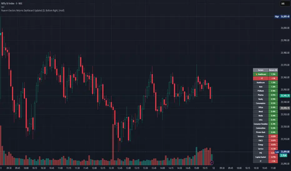 Paavvrri Sectors Returns Dashboard is a premium market-breadth tool built for traders who want a clear, real-time view of sector rotation without scanning dozens of charts.